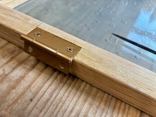食器棚側板にも同様の加工を施して、蝶番を付けました。