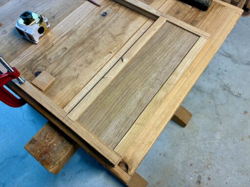 コーナー部分は相欠き加工を施しました。まだ固定はしていませんが、釘やビス、ステープルは使わなくて済みそうです。