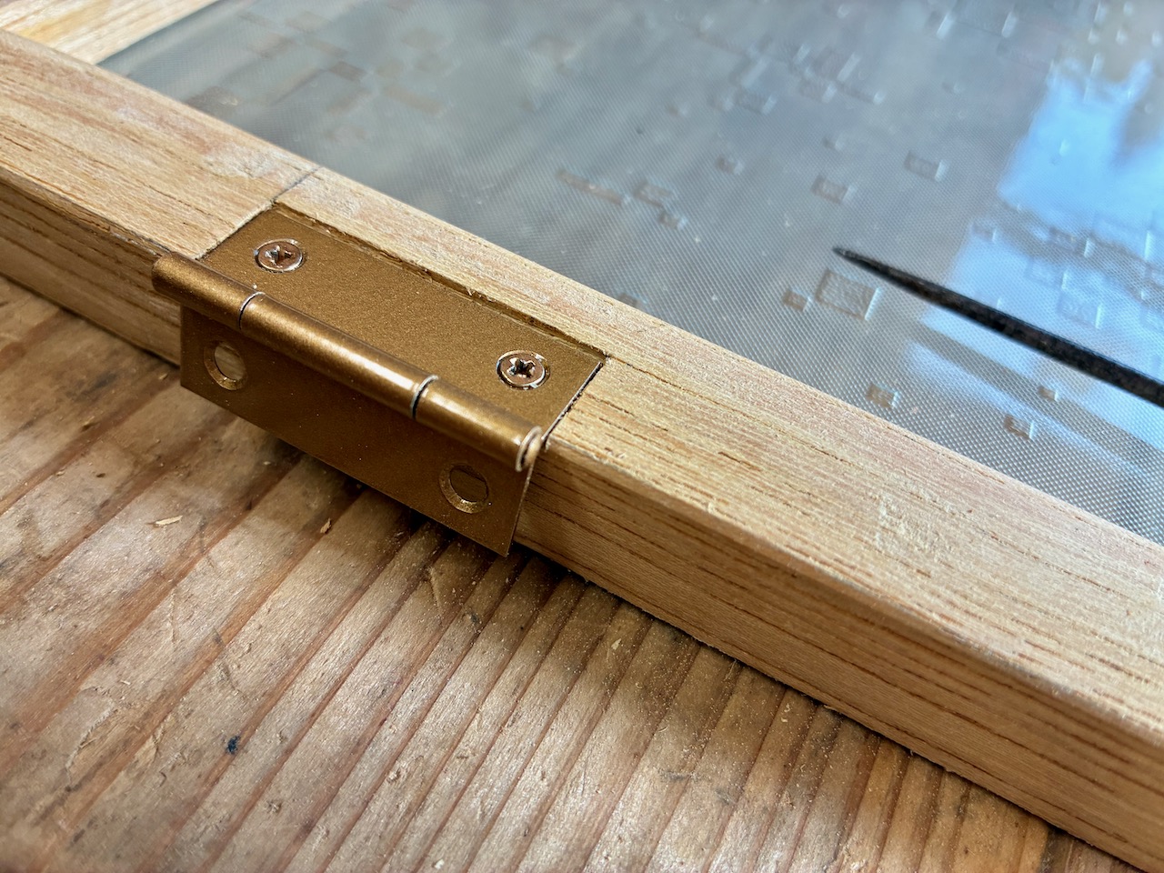 蝶番は手元にあるもののサイズがちょうどだったので、これを利用します。