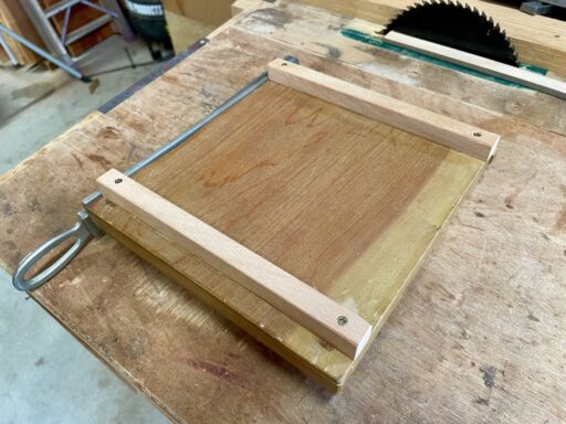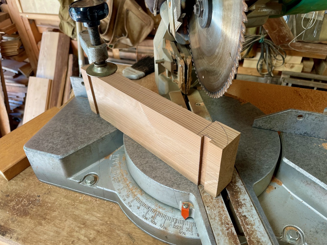 JOZU+で使った木製スプーンの使い心地が良くて、自分で作ってみたいと思いました。左手に持った箸置き、黒っぽい材は黒檀のように見えますが、これも100円だそうで。(100円で黒檀はありえないので、黒く着色しているのでしょう。)