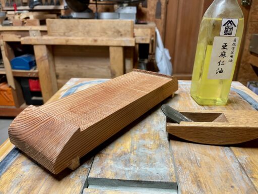 京都の東寺や北野天満宮で定期的に開催される骨董市と比べると、大阪四天王寺の骨董市では屋台の食品も含めて全体的に価格が安い。この錆びた平鉋、価格を尋ねると300円。聞き間違ったかと思うほど安い。鉋台に傷はないし、鉋身の錆を落として刃を研げば、化けるかもしれない。