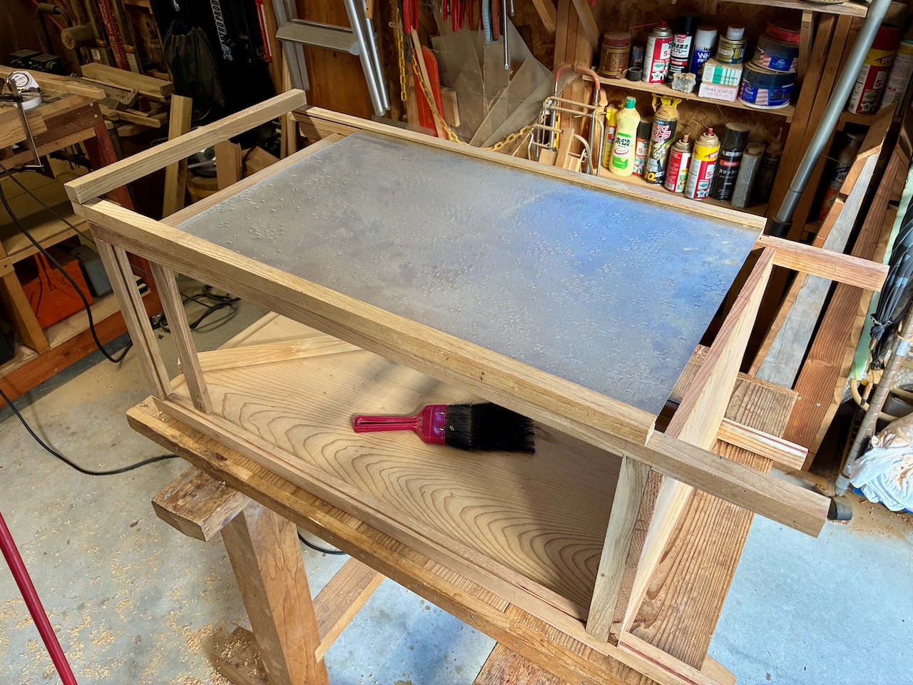 コーナー部分は相欠き加工を施しました。まだ固定はしていませんが、釘やビス、ステープルは使わなくて済みそうです。