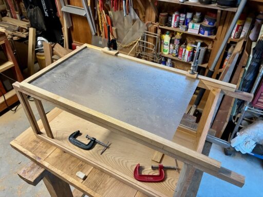 これで側板用木枠2点の直角が出ました。次は背板の加工に進みます。