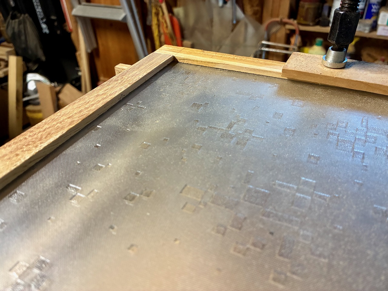 木枠を仮に組み立てると直角が出ていなかったので、鉋で修正しました。角材は元々、24ミリ角でしたが、21ミリまで削ってやっと真っ直ぐになりました。