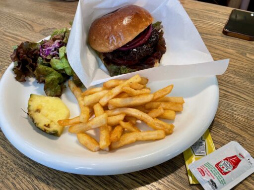 このような巨木も製材できる設備を所有する製材所が今も現役で活躍しているのでしょう。おそらく昼休みで誰も居られないのだろうと思い、我々もランチに出かけました。