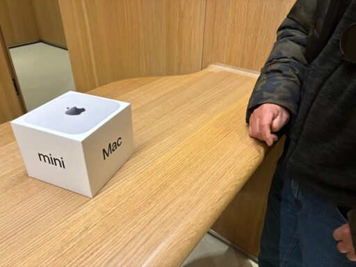 前日の1月3日に近くのセブンイレブンで10万円分をApple Accountにチャージして、オンラインのApple StoreでMac mini M4を購入し、グランフロント大阪南館のApple Umedaでピックアップすることにしました。予約した時刻の1時間も早くに到着しましたが、すぐに応対してくれました。