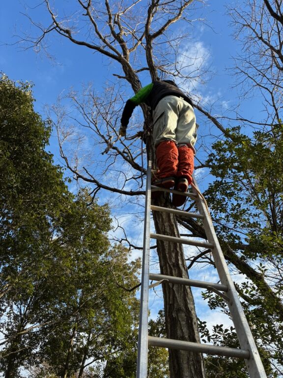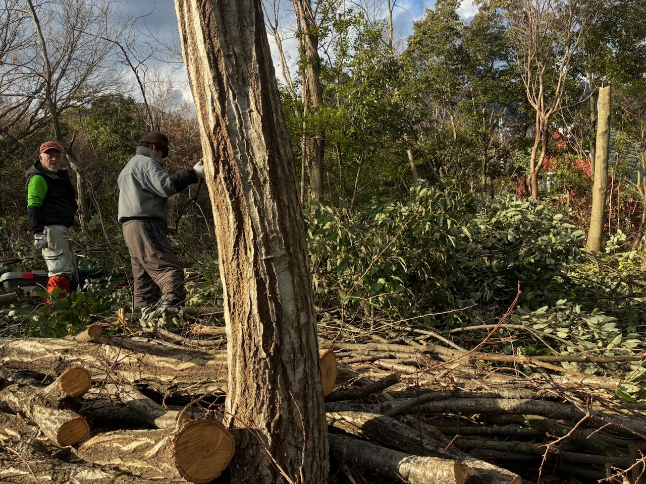 今季のように住宅街で伐倒、伐採作業を行う場合は、広さが限られた敷地内での作業になるので、逃げる場所が限られる。正確に意図した方向に倒せないと、大きな事故につながるということを肝に銘じるべきと改めて実感しました。