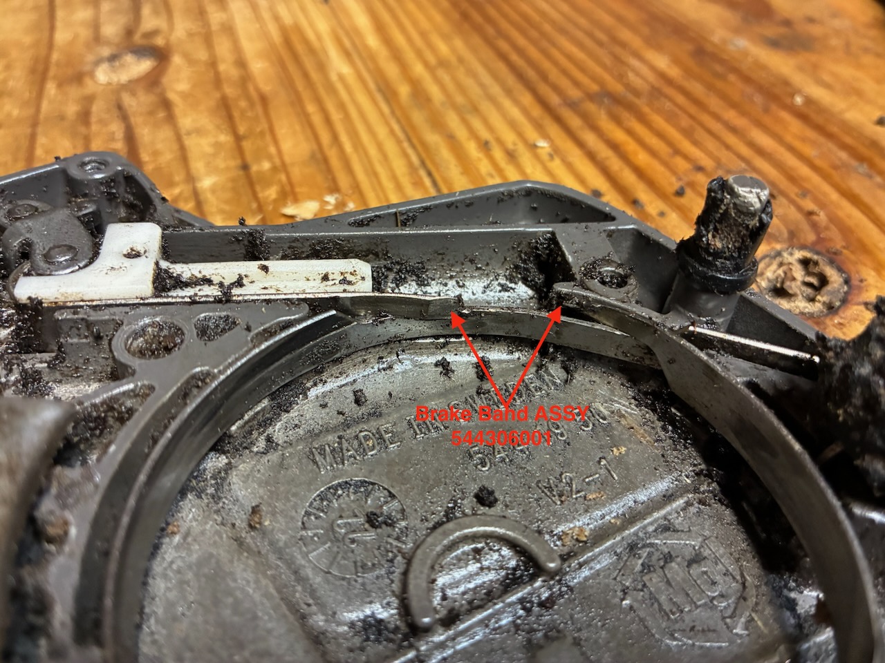 ブレーキバンドが破損した状態のブレーキスプリングは意味がないので、取り外しました。