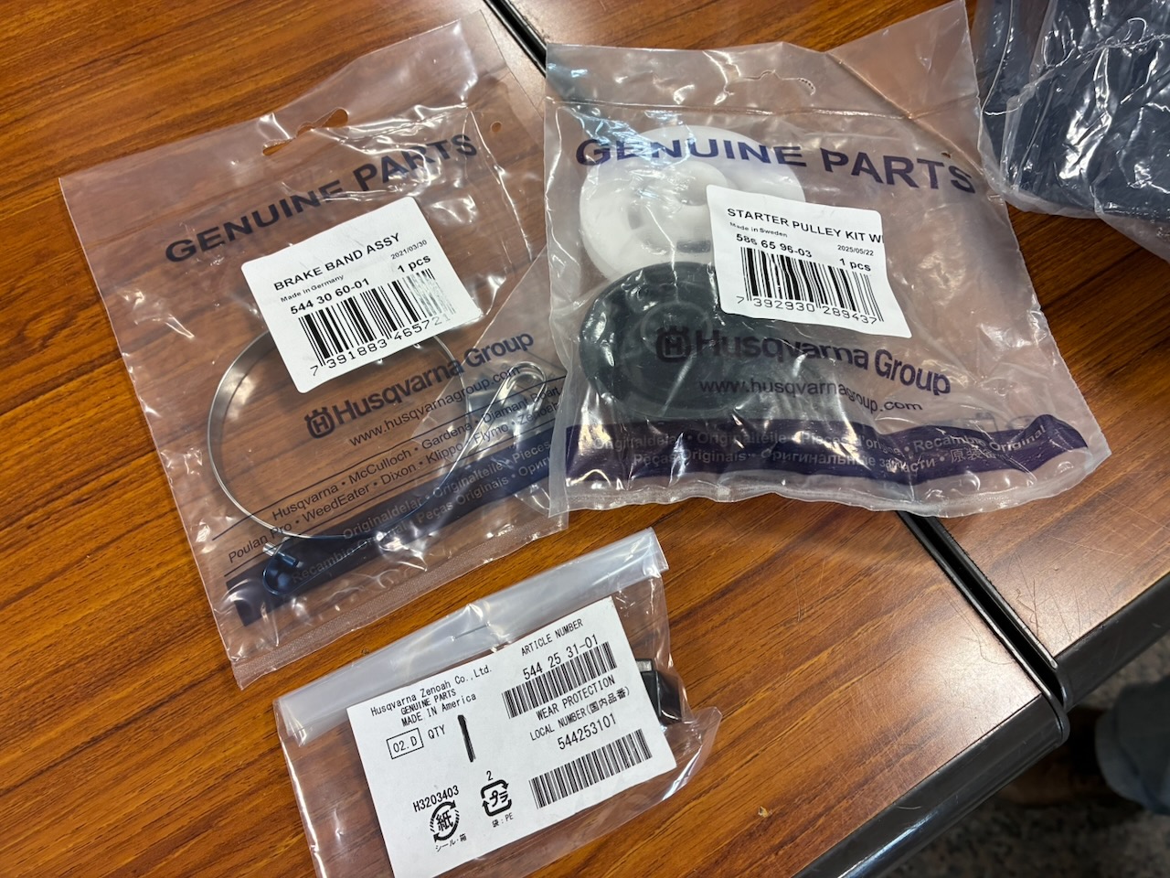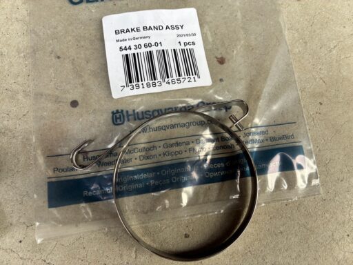 Husqvarnaのサイトで確認すると、ブレーキバンドASSYのパーツ番号は544306001。(駿遠商事での価格は2,760円)熱で溶けたようになっているウェアプロテクション(544253101駿遠商事での価格は870円)もついでに交換しよう。