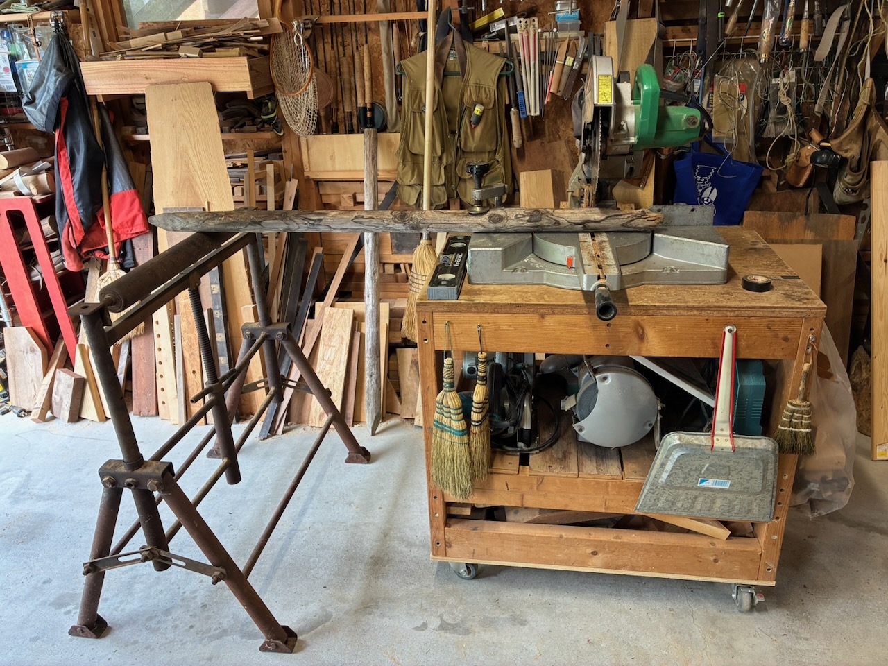 廃業した建具屋さんから2,000円で譲っていただいた年代物の鉄製ローラースタンドを初めて使ってみました。