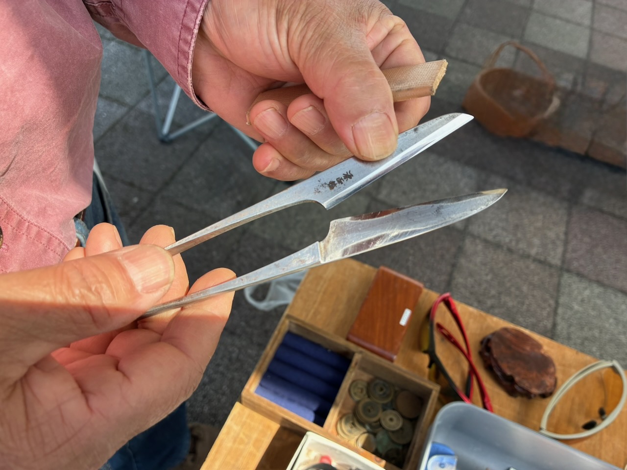 こまそうさんの店では研いだばかりの握り鋏を500円で入手。