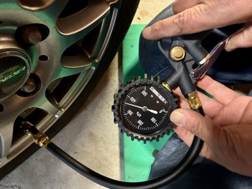 展示品処分市開催中のAstro Products京都山科店で30%引きの税抜2,687円で買って来た、エアタイヤゲージ蓄光タイプTG102を使って空気圧を調整しました。