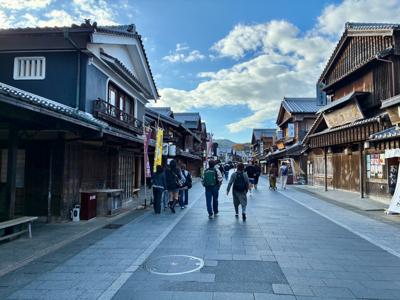 三連休のおかげ横丁も朝はこんな感じ。Starbucksに立ち寄ってから内宮を目指しました。iOSの言語を英語に設定しているApple Mapsを使っていてわかったことですが、これまで”Naigu”と呼んでいた「内宮」は正しくは”Naiku”だそうです。