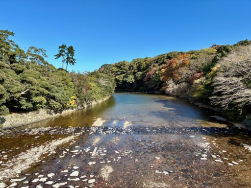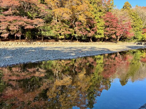 五十鈴川御手洗では水面に反射する紅葉が綺麗。