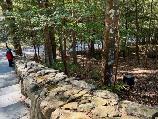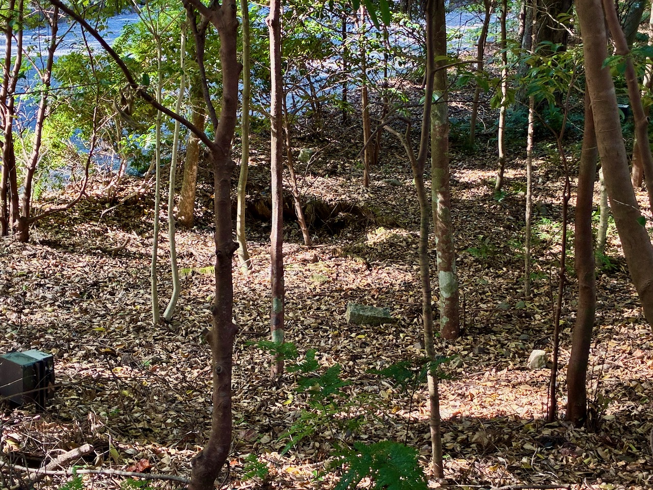 階段上の方から撮影したこの写真が最もわかりやすい。大きな窪みがあるところに立っていた巨木です。