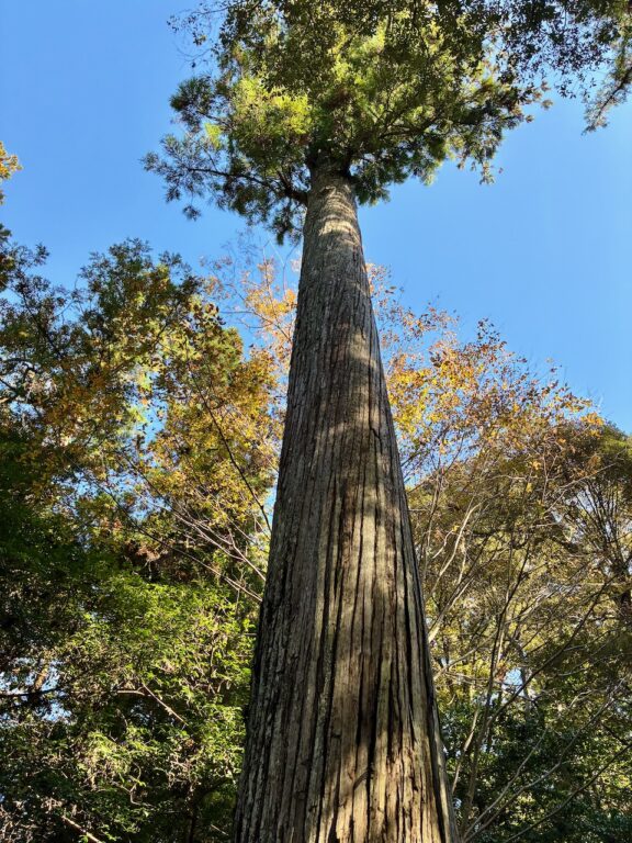 現在の正宮周辺には風倒木で倒れた神宮杉の切り株が見当たらなかったので、令和15年(2023年)式年遷宮敷地周辺を探しました。