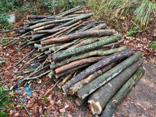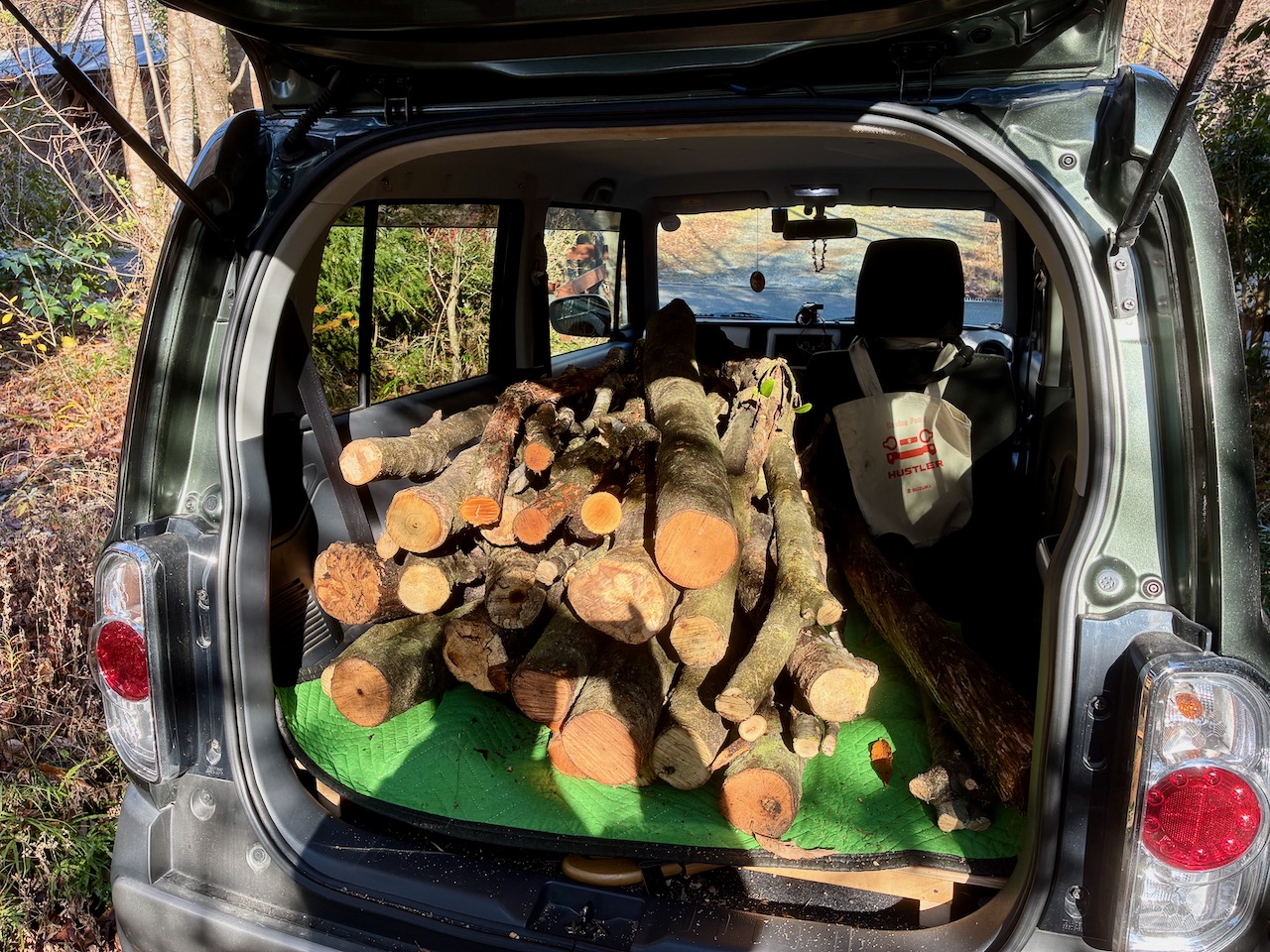 今日も広い道路の方に伐倒した木を落として、車に積み込みました。