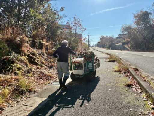 下爺の分はバタコ(運搬車)に載せて、すぐ近くの下爺宅へ運搬しました。写真はすべてiPhone 16eで撮影していますが、12 miniと比べると、逆光でも意図した通りに綺麗に撮れます。