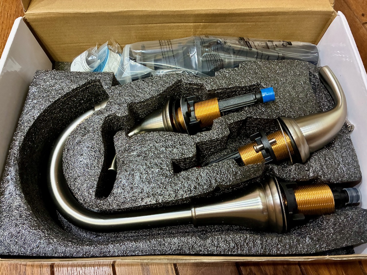 混合水栓をAmazon U.S. (amazon.com) から輸入するのは5点目になります。4点目はこの前、輸入したのですが給水/給湯ホースが付属せず、ホースの接続口のサイズがなぜか国際規格の1/2″になっていて、これまで使っていたホースの口径(M10)が合わないので返品しました。Amazon appを使ったら思っていたよりも簡単に返品できて、返金処理もしてもらいました。
