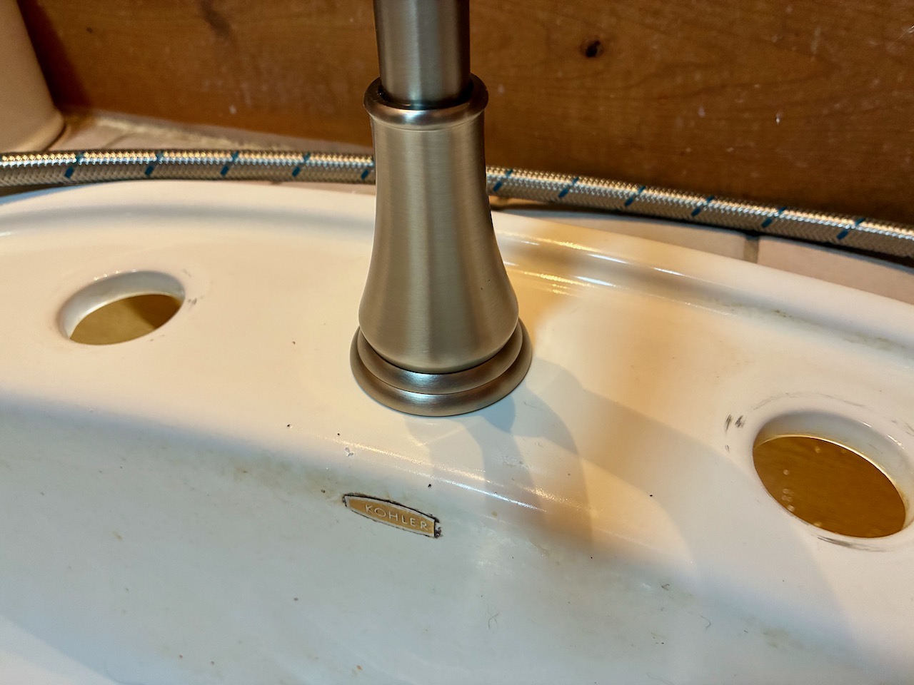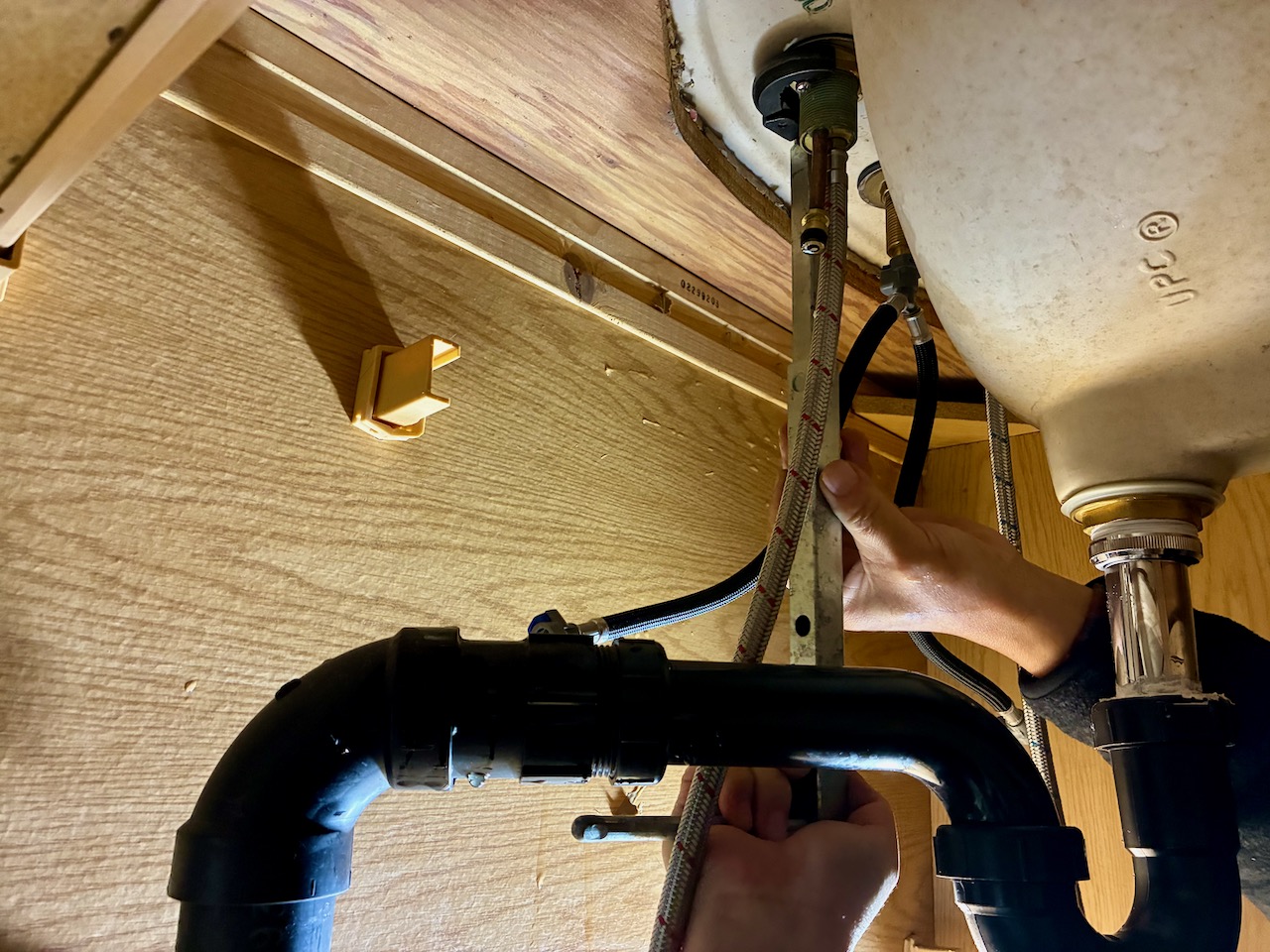 吐水口本体をシンクに通す前にコーキング処理しましたが、コーキングはなくても良さそう。