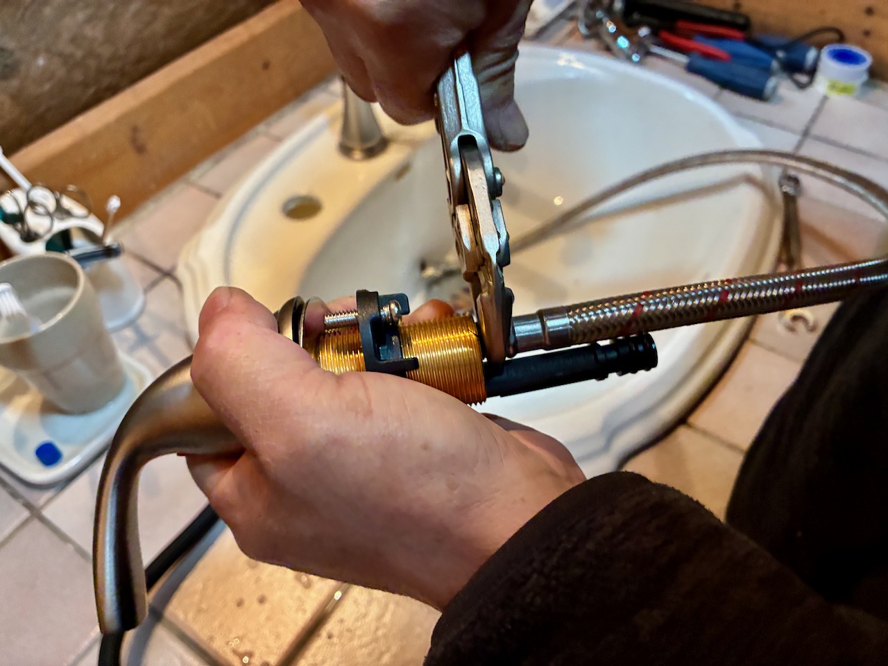 古い混合水栓を取り外す際にはこの米国製RIDGIDの伸縮式シンクレンチ(Model 1017)必須です。