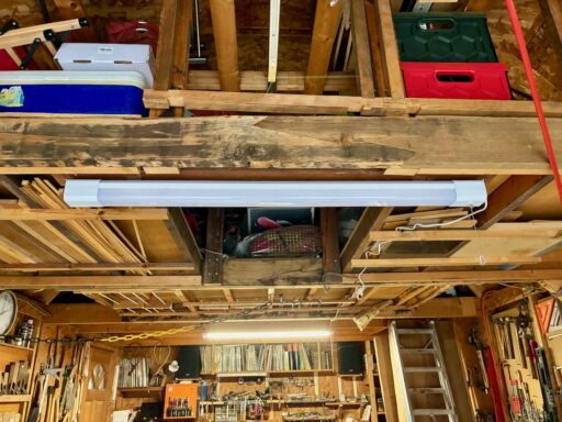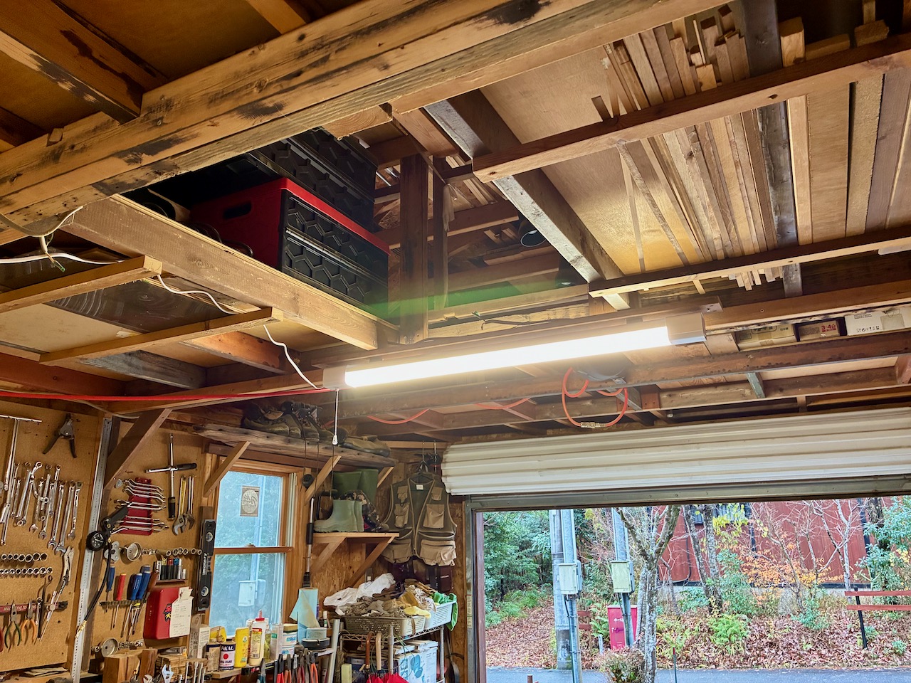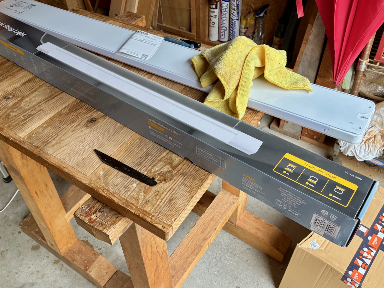 ガレージにはCOSTCOで買った、同様の照明器具が二つ取り付けてあります。故障したのはガレージ入口側であり、ガレージ内の半分が暗くて作業がしづらくなりました。倉庫店に買いに行く予定はないし、行っても売ってるかどうかもわからない。
