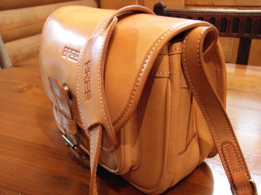 この鞄、ネーミングからして婦人用ですが、飴色になるまで日焼けさせて、中にカメラを入れると男女兼用になります。