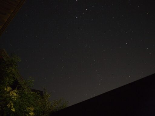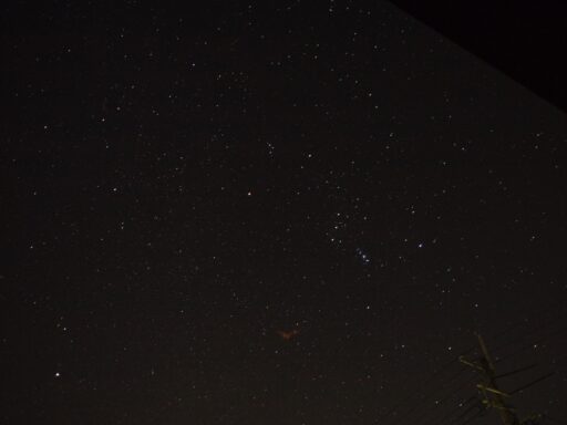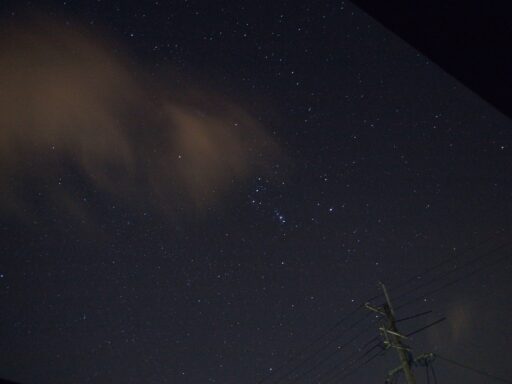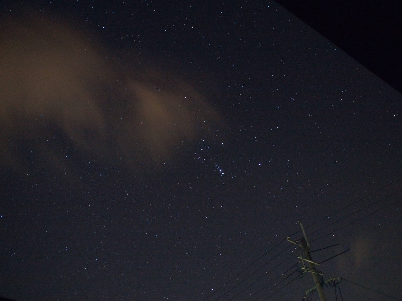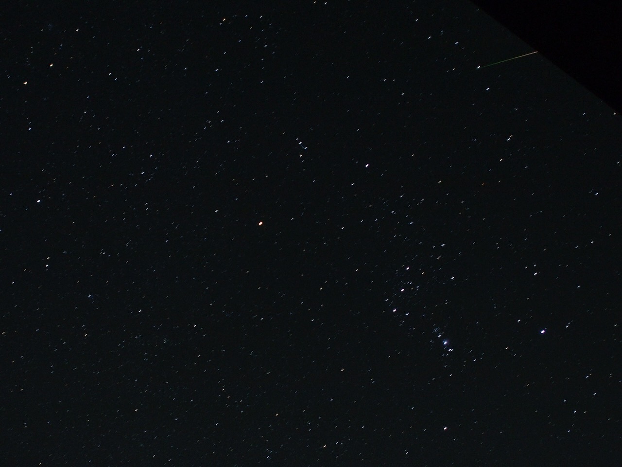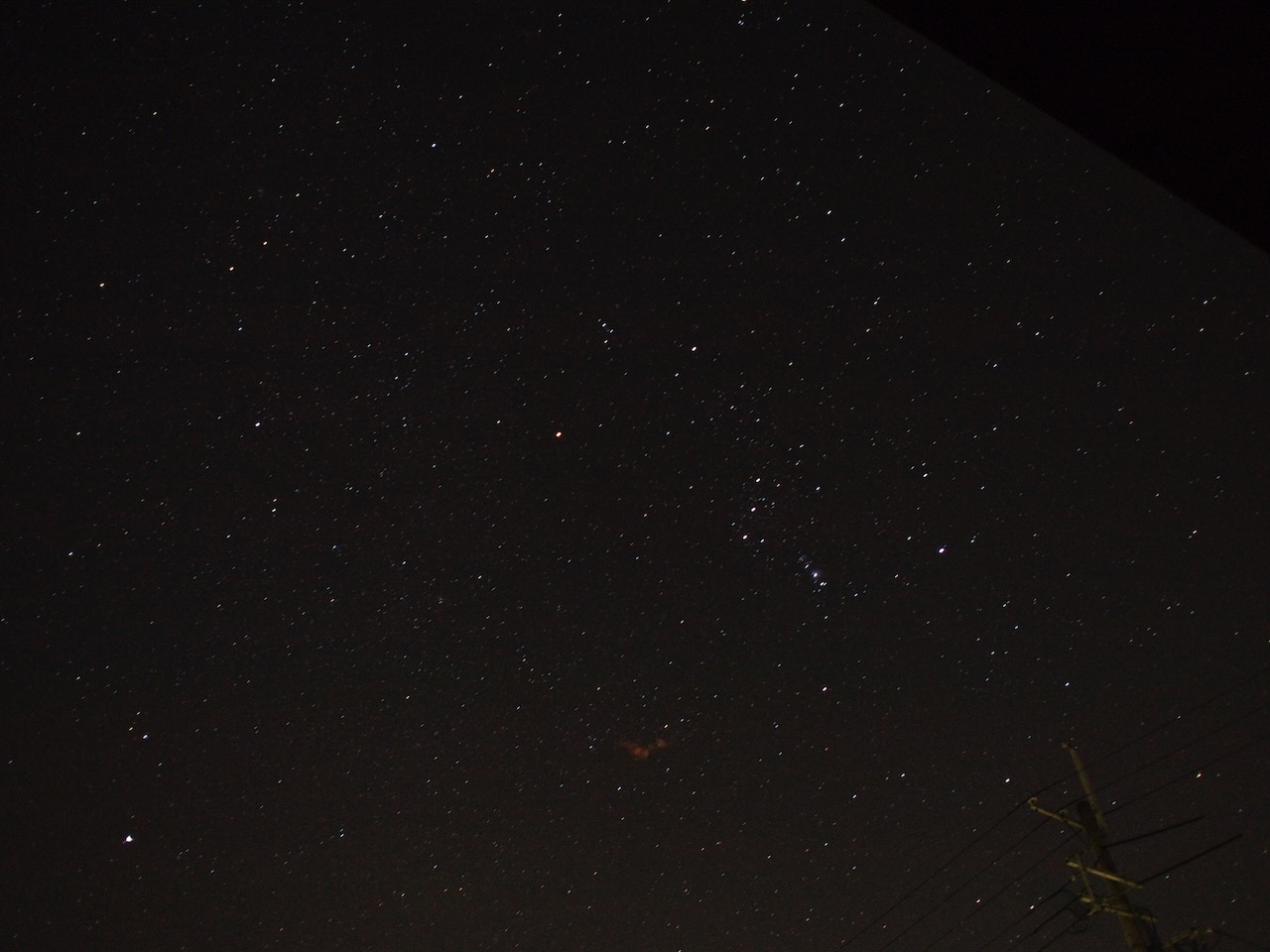 これまで簡易天体撮影にはOlympus E-520とOlympus PEN E-P1を使用してきましたが、高感度、長秒時露光での縞状の熱ノイズに対して、限界を感じるようになりました。二台のうち、どちらかと言えば、E-P1の方が高感度耐性が高いと思いますが、大して変わらないというのが実情です。E-P1の方がISOの設定が細かくできるので、有利なだけかもしれません。E-P1に17mmパンケーキを装着して三脚固定撮影した下の写真、横方向に縞状のノイズが現れています。ISO800ぐらいから醜いノイズが目立つようになります。