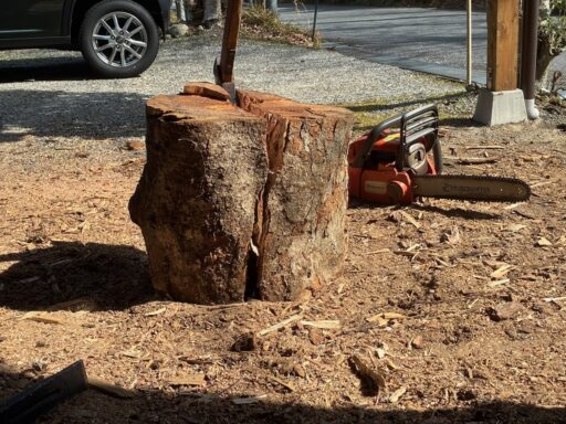 木工師匠は玉切りはしても伐倒はしなくなりました。トラウマ(心的外傷)があるそうです。