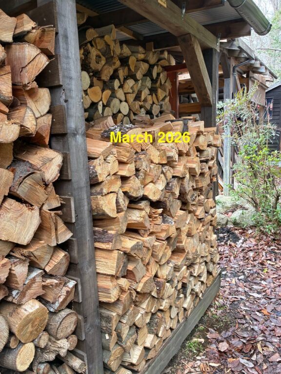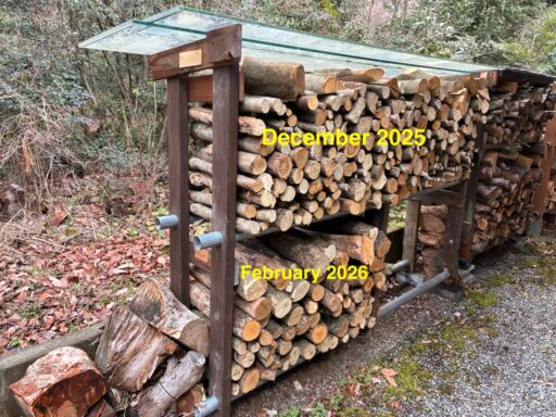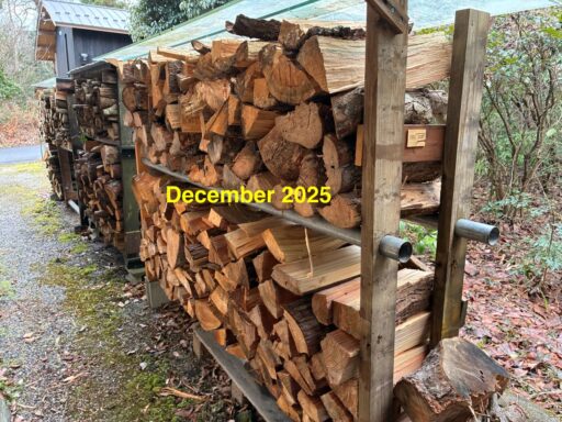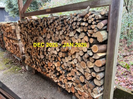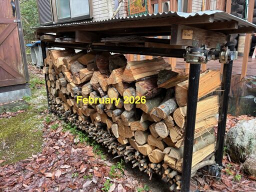 多すぎた去年と比べると、少ないものの、例年よりも多くの薪を集めることができました。今季、これまでに積み上げた薪(およそ8立米)を使用するのは2027年秋以降になりそうです。