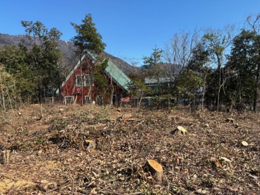 また、一時的に道を挟んだお向かいさん別荘宅敷地内に仮置きさせていただきました。