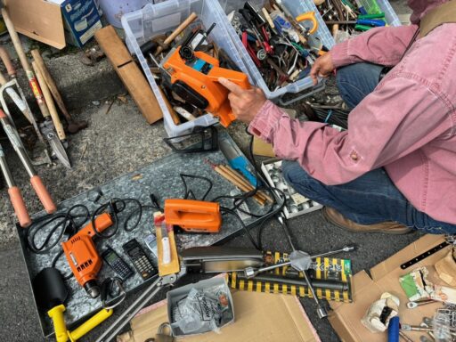 平野神社に近い路上で店を構えるいつものおじさんの所では、東寺ガラクタ市で見たHitachiブランドの電動工具3点がまだ売れずに残っていました。新品未使用品のようでしたが、ちょっとチープ感が漂っているので購入を控えました。