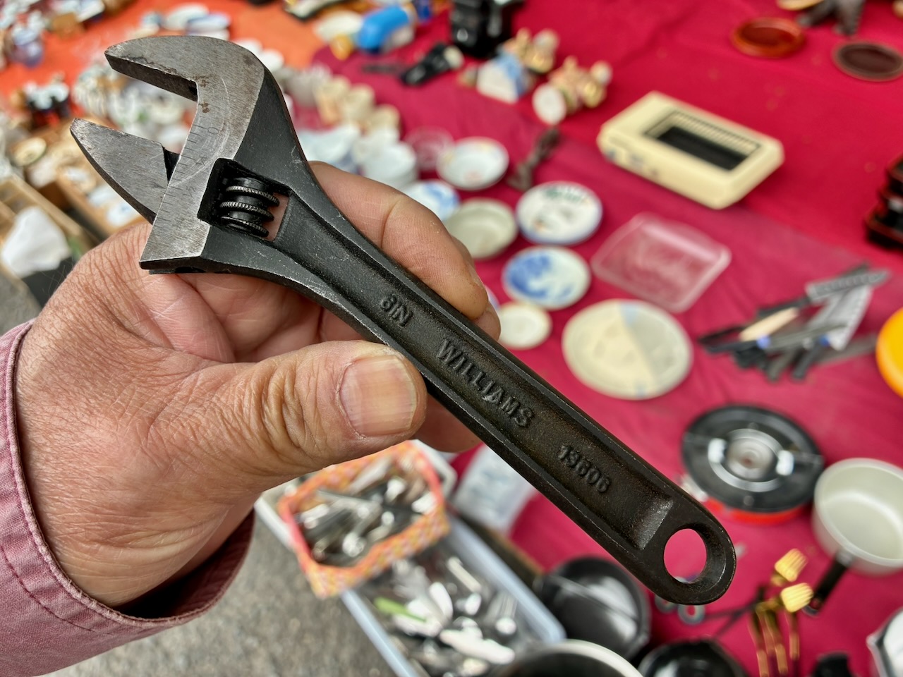 小ぶりなこのモンキーレンチはWILLIAMSの刻印があります。調べると、WILLIAMSは創業1882年の業務用工具メーカーらしい。ドロップ鍛造の技術でレンチやスパナなどのハンドツールの製造に革命をもたらした老舗企業だそうです。